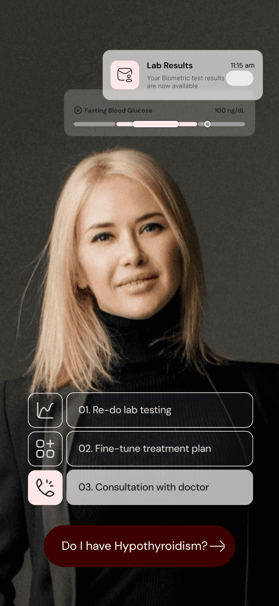 Video consultation with a thyroid specialist to walk through your results, connect symptoms with lab findings, and uncover the underlying drivers of your fatigue, weight changes, mood, and more.
